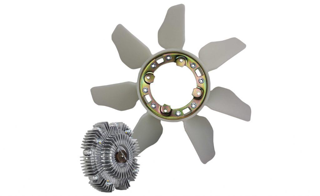 In many 4×4 and commercial vehicles, the engine-driven cooling fan is connected via a viscous fan clutch attached to the water pump pulley.