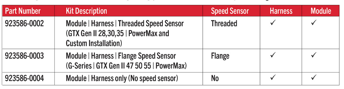 • Create custom configurations for Garrett turbochargers without pre-machined speed sensor port or non-Garrett manufactured turbochargers